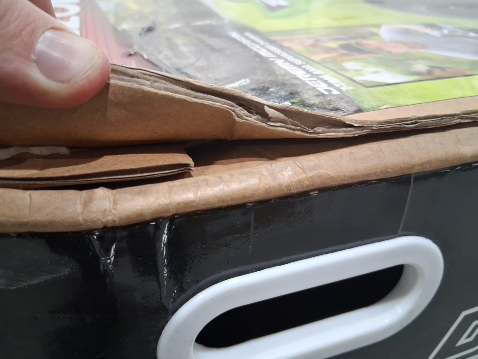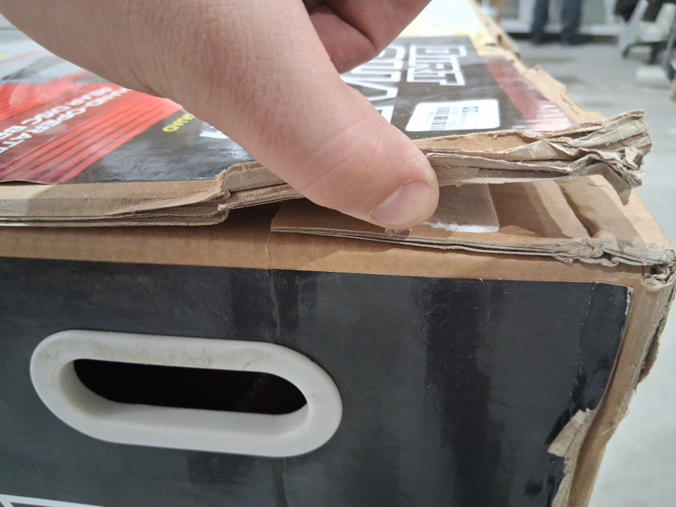 The seal on one part of the bottom side came undone due to shipping and was retaped for security, but there is no significant damage to the box otherwise. The seal is still intact in all other places, indicating that the box has never been opened.