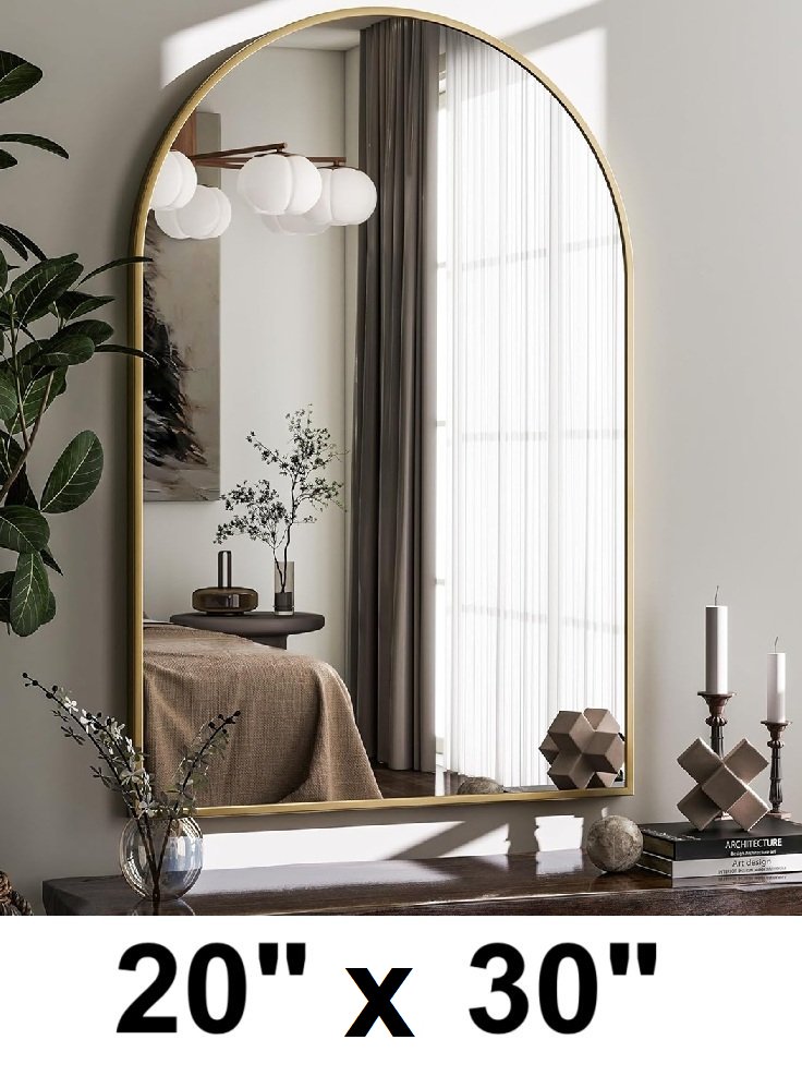 HARRITPURE Metal Frame Wall Mounted ARCHED Mirror - 20" X 30" - GOLD