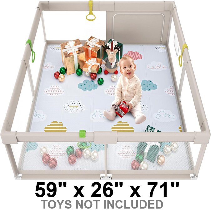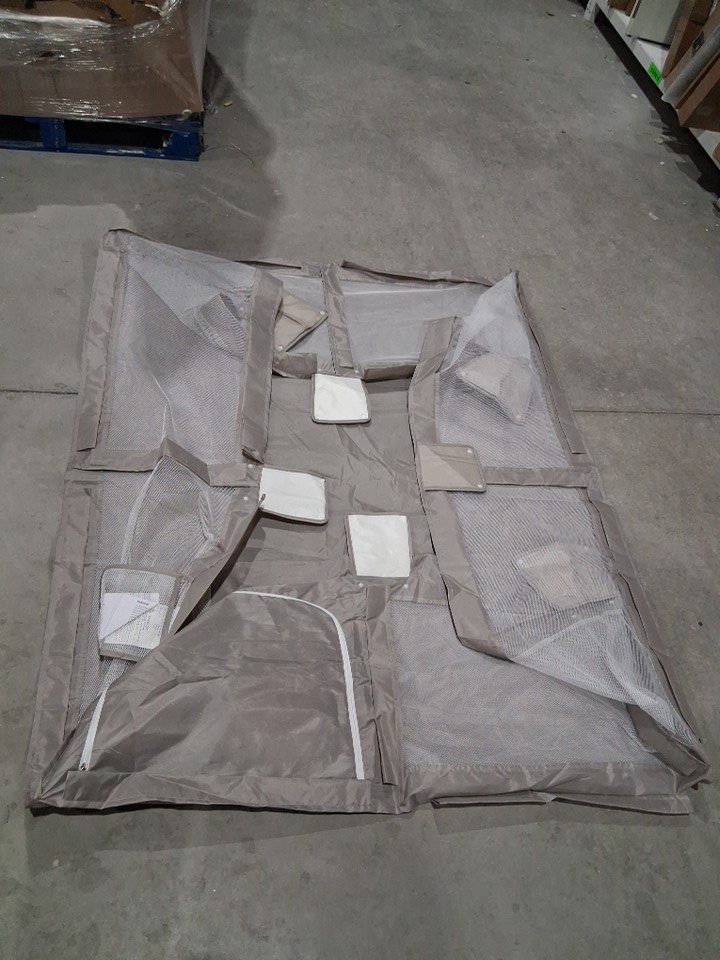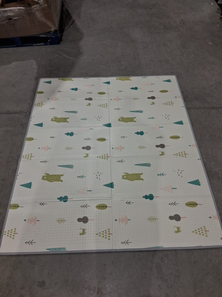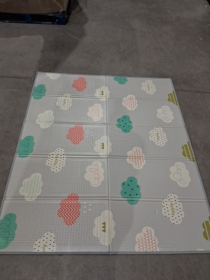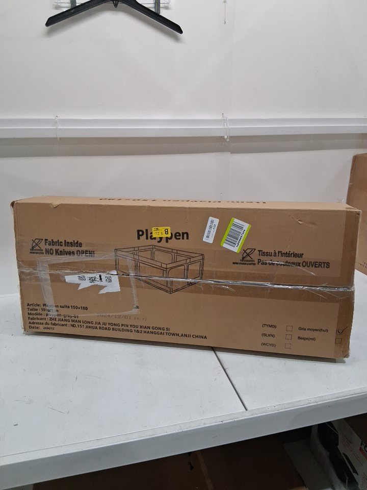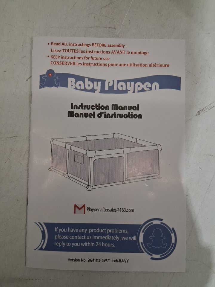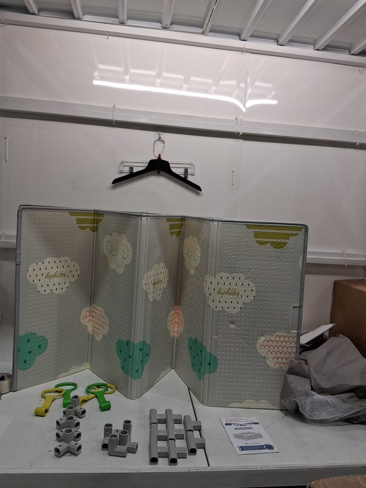 Missing the foam padding around the bars that are supposed to have it. Piece counts verified by staff. The playpen netting and the foam floormat were both laid out on our warehouse floor for inspection of the product and therefore may have gathered dust/debris during this process.