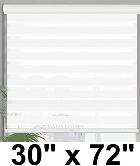 kokorona cordless zebra blinds roller shades with dual layer sheer shades - 30" x 72" - white (model: CAQZ-DZSTBML-30W)