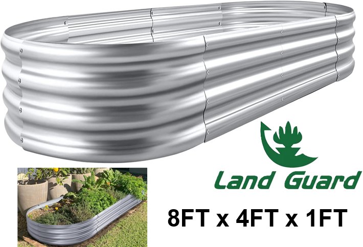 Land Guard Galvanized Raised Garden Bed Kit - 8FT x 4FT x 1FT - SILVER