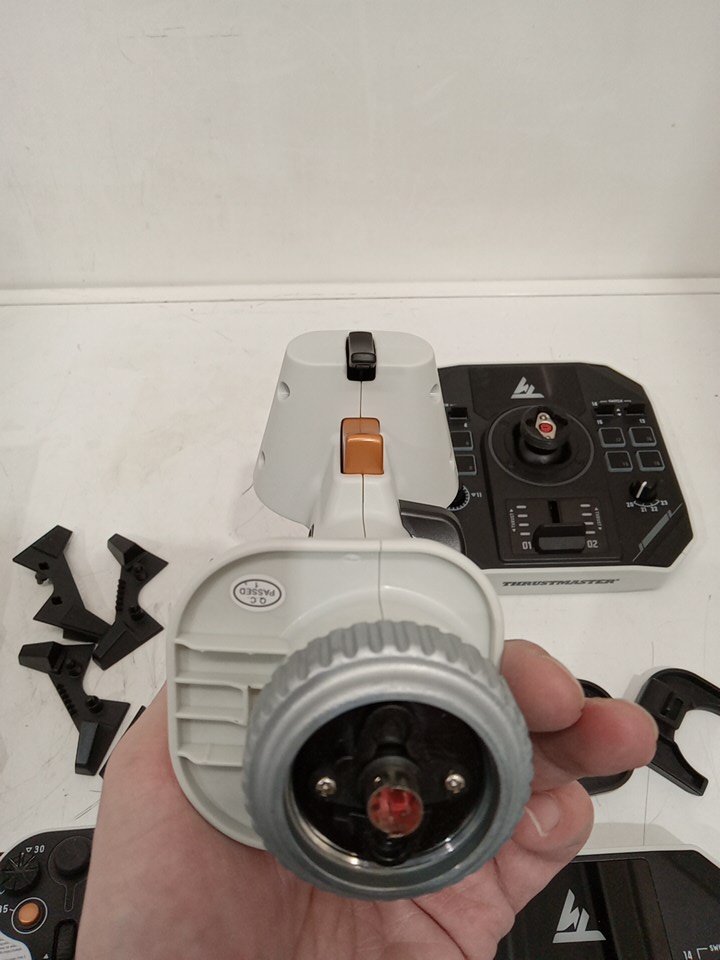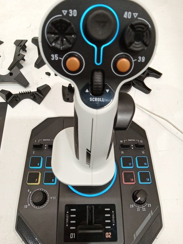 Item has some minor scuffs on it as a result from previous use. Item tested and working, however during our testing we found 2 buttons/controls on one joystick (39, 40) don't work. The item is also missing the two usb-a to usb-c cables. See attached photos.