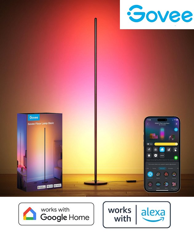 govee rgbic smart corner floor lamp - WORKS WITH ALEXA AND GOOGLE HOME - with reactive music mode - 80+ dynamic scenes - black (model: h6076A)