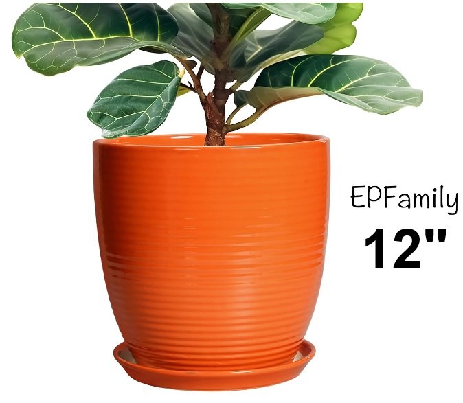 EPFamily Indoor/ Outdoor Ceramic Plant Pot with Drainage Hole and Saucer- 12" - Orange (model:‎5planter249)