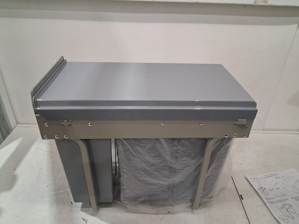 GOOFCXO Dual Pull Out/Slide Out Garbage Bin/can with Lid and Soft-Close Rail - 10L and 20L - grey