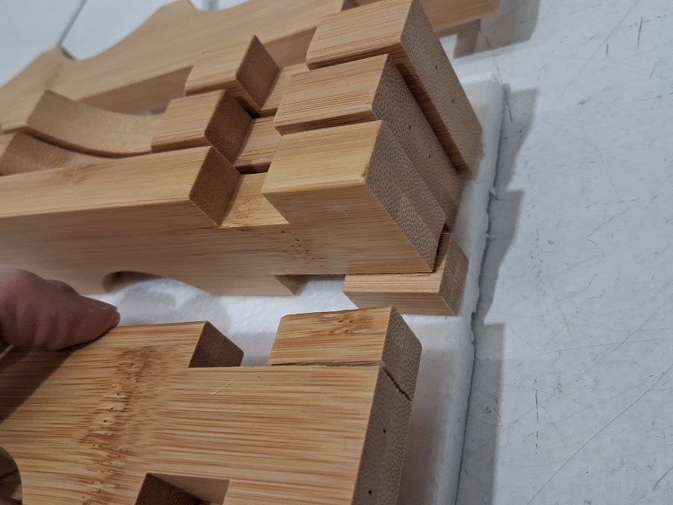 Item arrived with minor damage to 2 of its shelf pieces however this shouldn't affect the structural stability or assembly of the item, see photos.