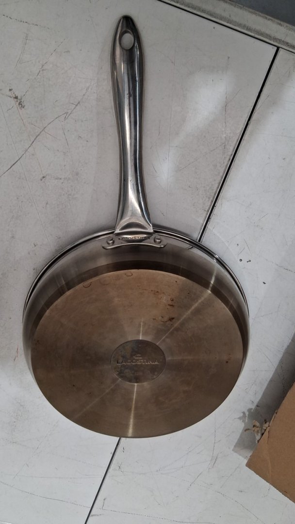 The pans are lightly used, there's spots and some discoloration