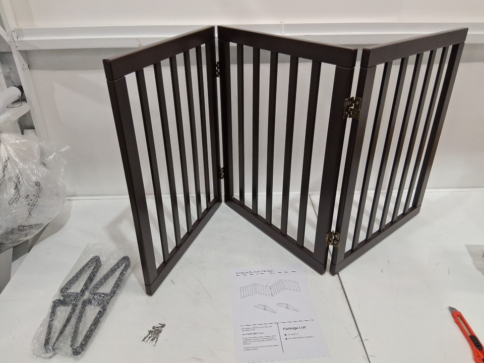 3-Panel Indoor Foldable Free Standing Dog Fence Gate - 24" x 53.3" - Dark Brown