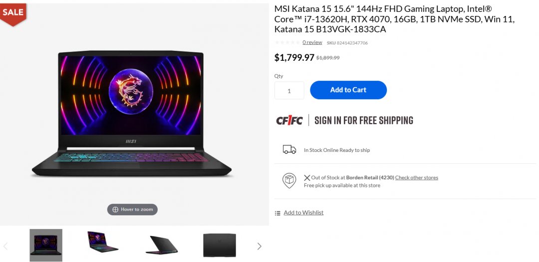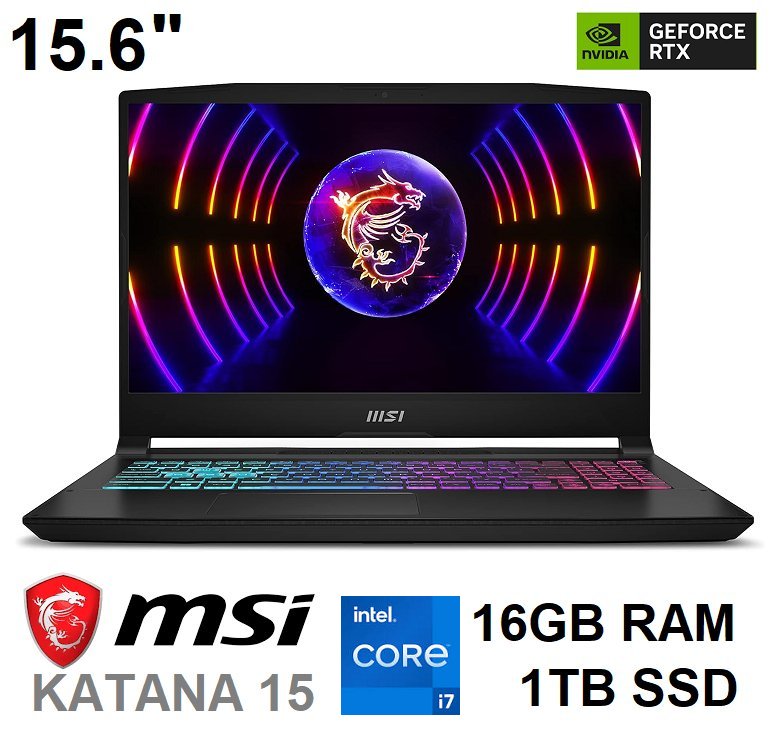 msi katana 15 gaming laptop - 15.6" 144hz fhd rgb gaming laptop - intel core i7-13620h | rtx 4070 laptop gpu | 16gb ram | 1tb ssd - black - (model: b13vgk-1833ca)