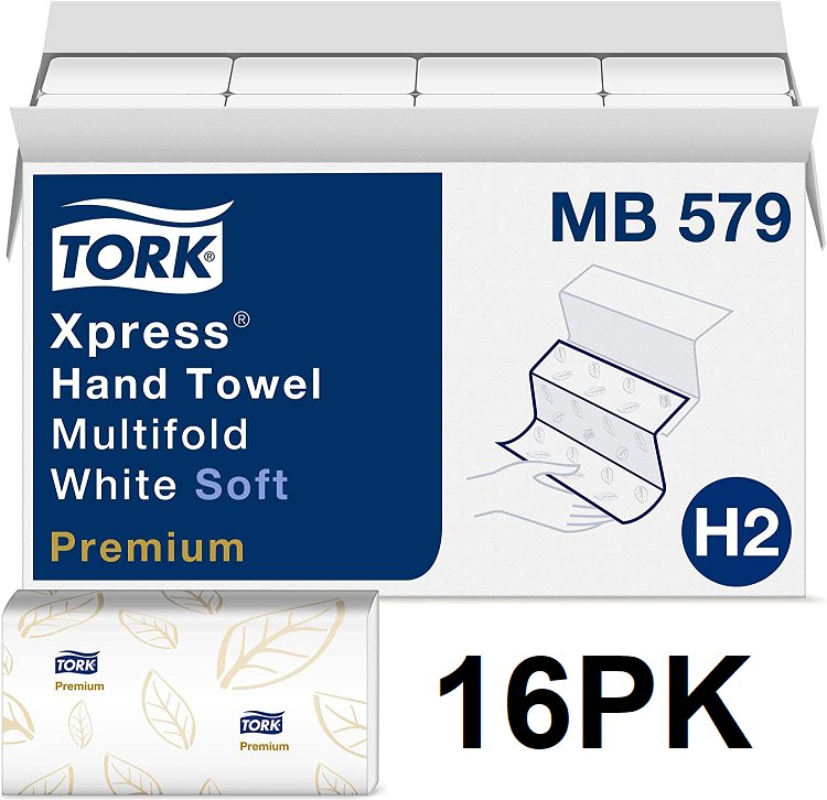 16PK (135 per Pack) Tork Premium MB579 Soft Xpress Multifold Paper Hand Towel, 3-Panel, 2-Ply, 9.125" Width x 9.5" Length, White