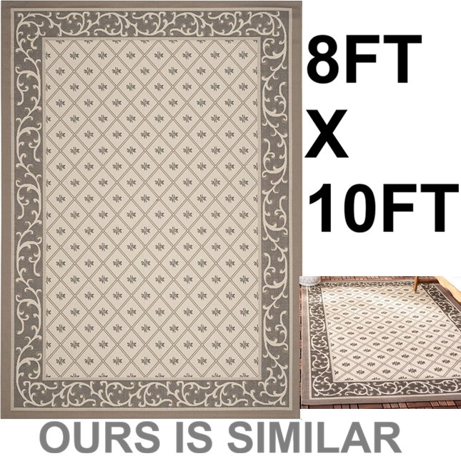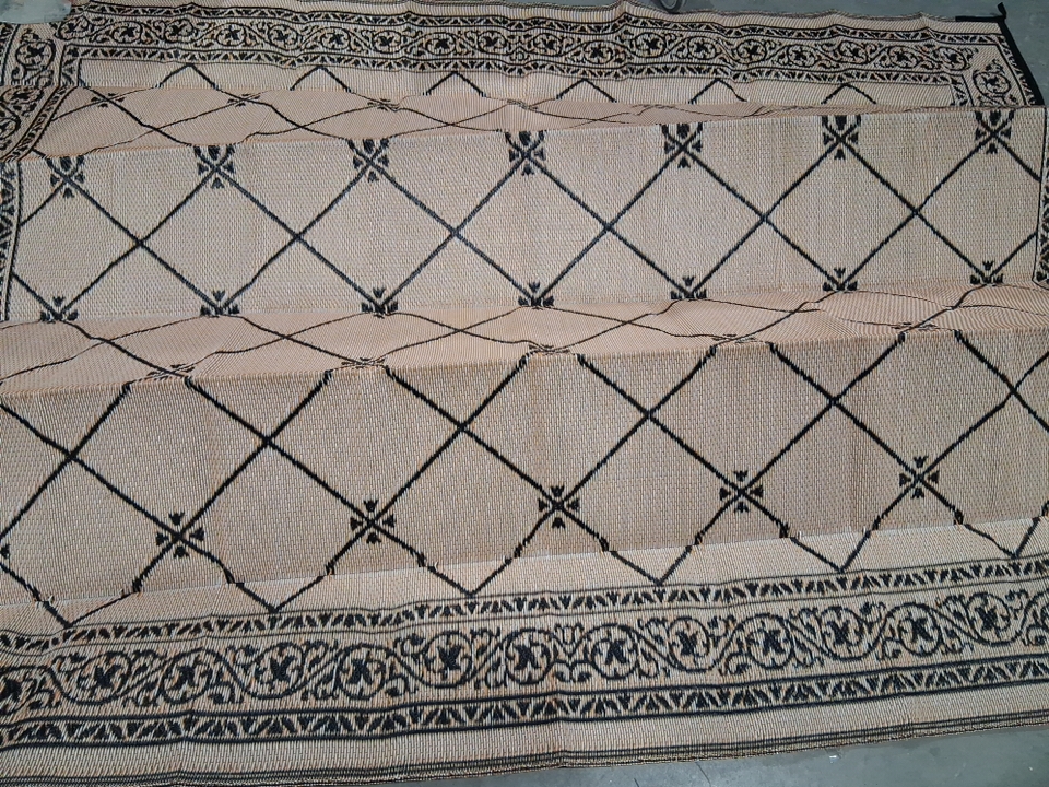 reversible wickered outdoor rug/mat - 8ft x 10ft - black/orange/white