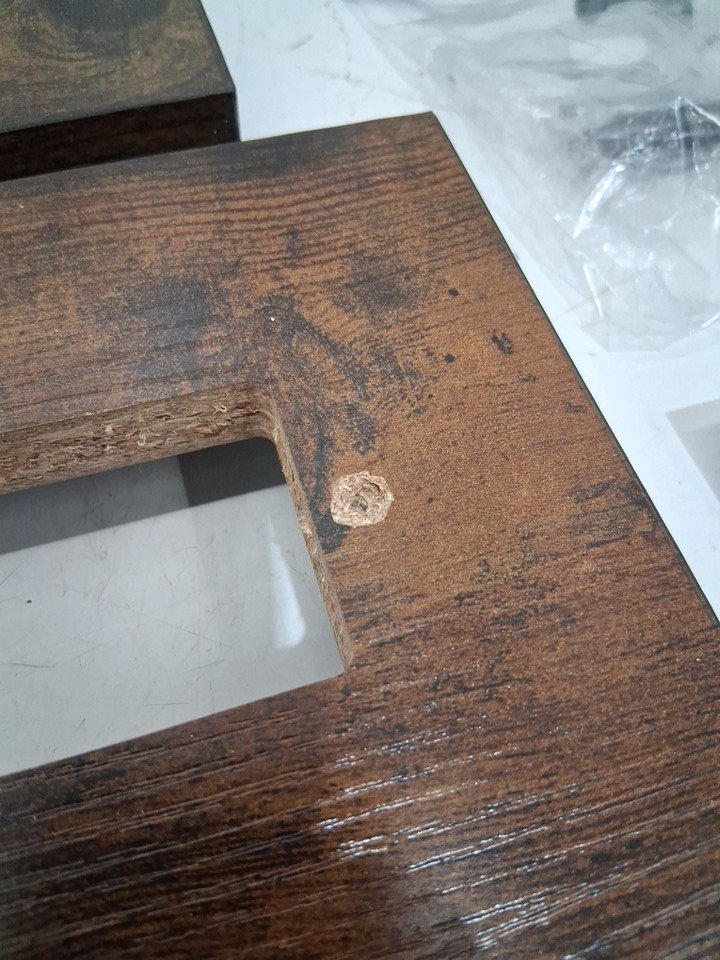 please note the product was discovered to have some light damage to the screw pilot holes, we believe these can still be used and the product assembled, please see photos for more details