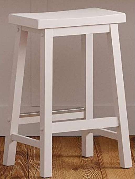 AmazonBasics Classic Solid Wood Saddle-Seat Kitchen Counter Stool with Foot Plate - 29" - White