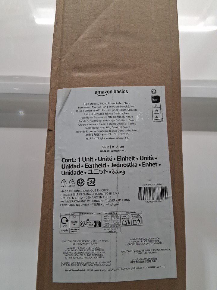 AMAZON BASICS HIGH-DENSITY ROUND FOAM ROLLER FOR YOGA & EXERCISE - 36" - BLACK (MODEL: ‎EPPBK-12-1)