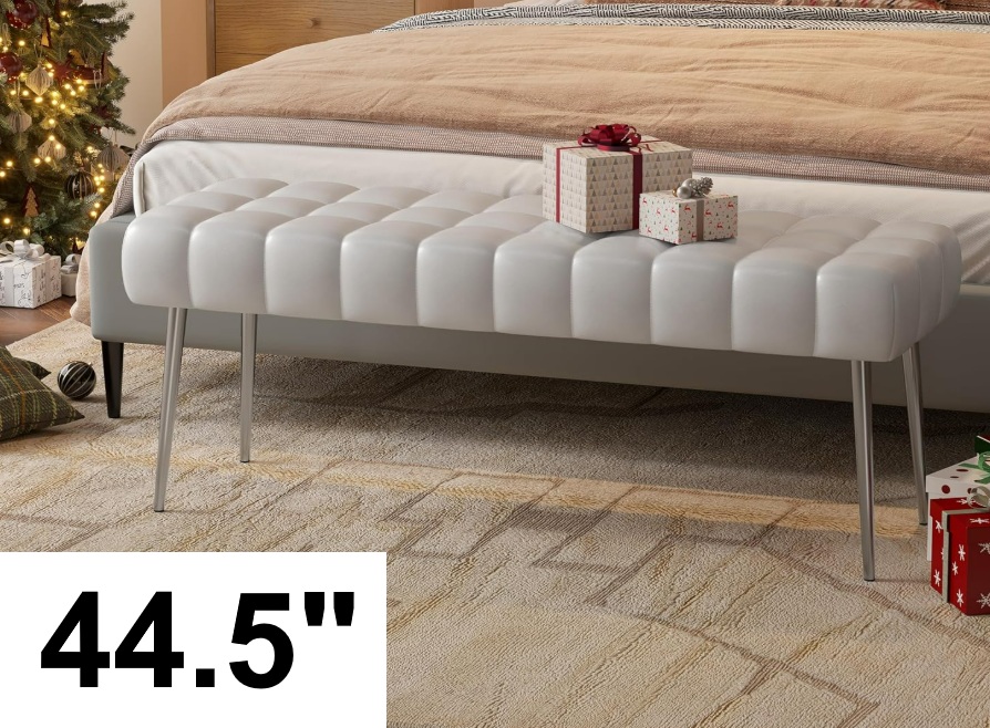 Apicizon Modern Faux Leather Bedroom Bench with Square Pull Point Design - 44.5” - White