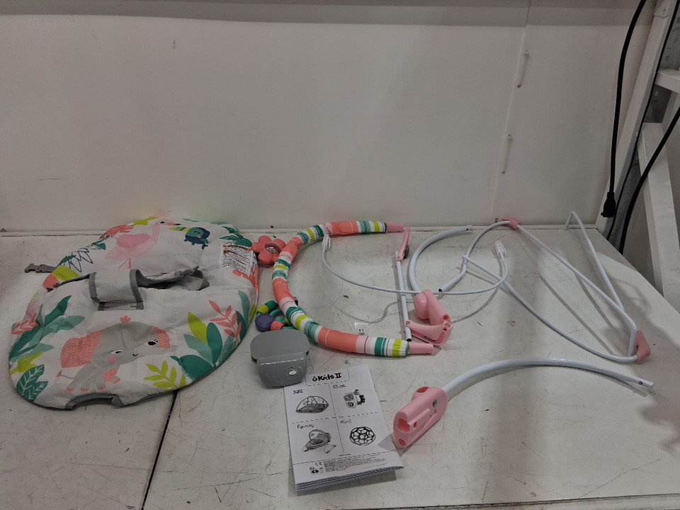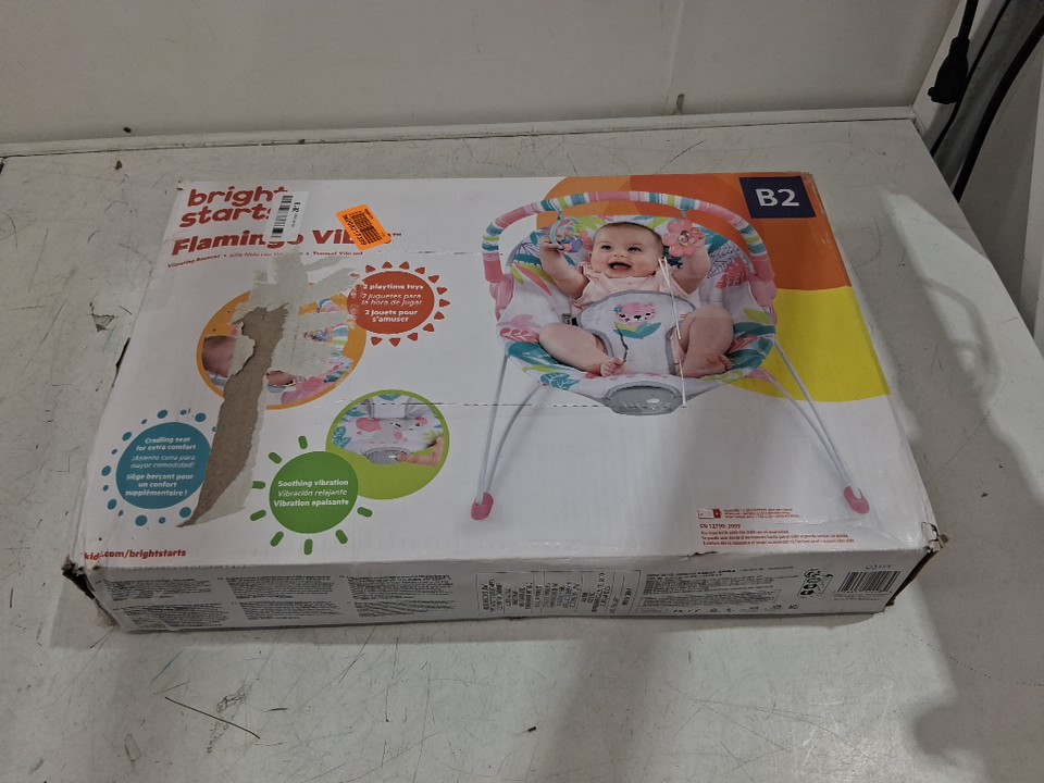 BRIGHT STARTS 3-POINT HARNESS VIBRATING BABY BOUNCER WITH TOY BAR - FLAMINGO VIBES (MODEL: 12228-ES)