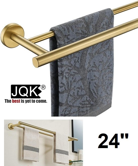 JQK Stainless Steel Double Towel Bar - 24" - brushed gold (model: TB100L24-BG)