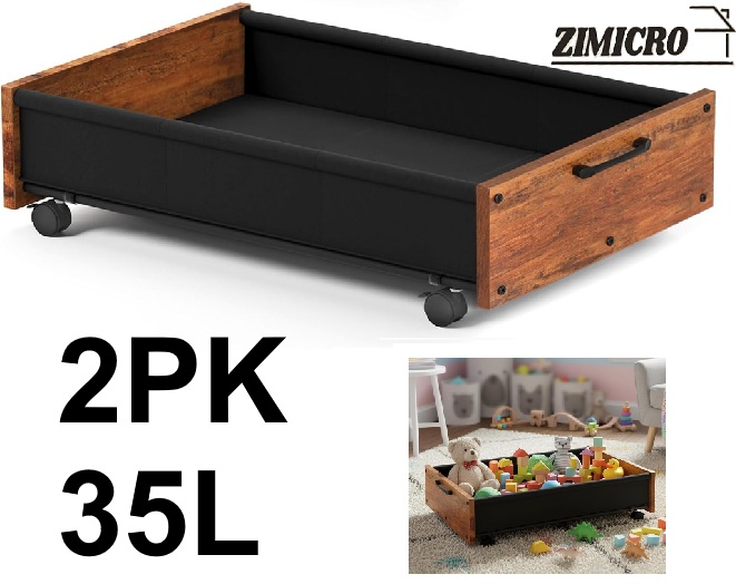 2PK ZIMICRO Wood Under Bed Storage with Wheels - 35L EACH - WOODEN BLACK