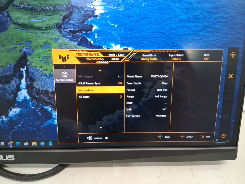 Asus Tuf Gaming Series 5 - VG27AQM5A Computer Monitor - 27" 2560 x 1440 300HZ - Black (Model: VG27AQM5A)