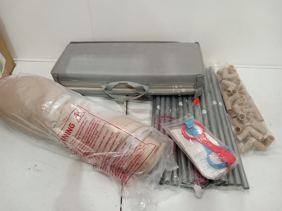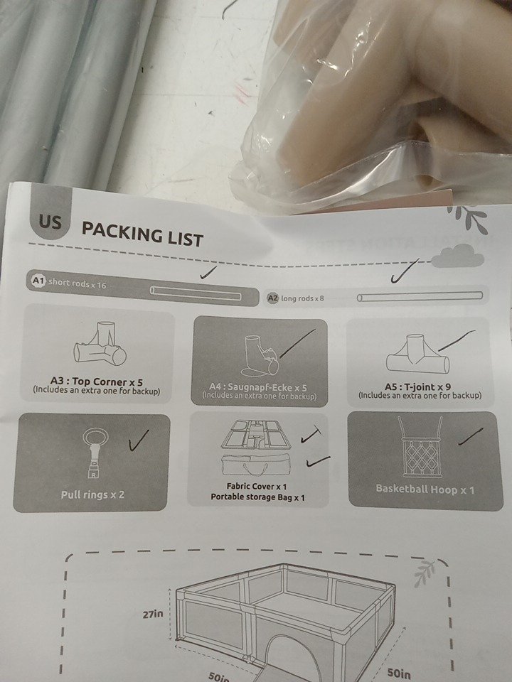Joypony Baby Playpen with Soft Mesh and Basketball Net for indoor and outdoor use - 50" x 50" x 27" - Beige/White