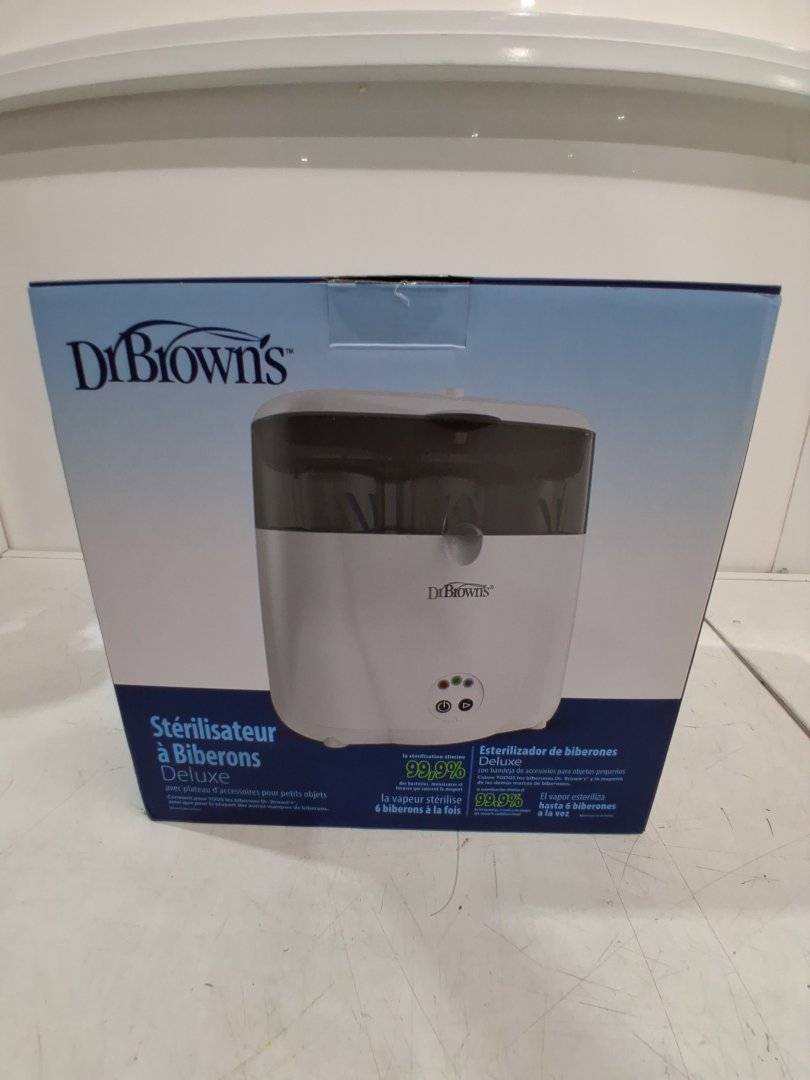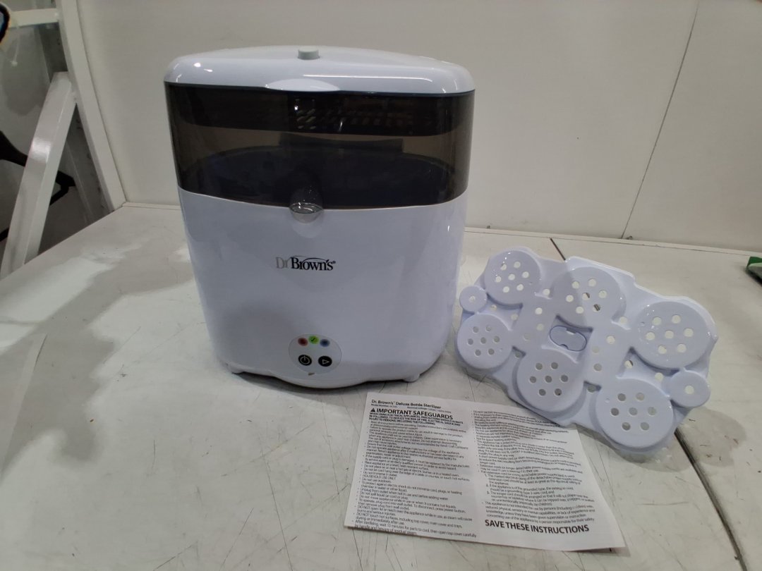 DR BROWNS NATURAL FLOW DELUXE BOTTLE STERILIZER ELECTRIC STEAM SYSTEM - STERILIZES 6 BOTTLES AT ONCE - white (model: AC045)