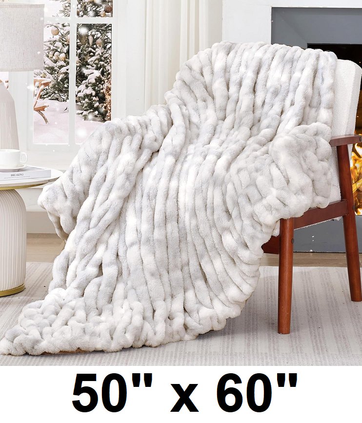 TOUCHAT FAUX FUR THROW TUFTED BLANKET - 50" X 60" - GREY