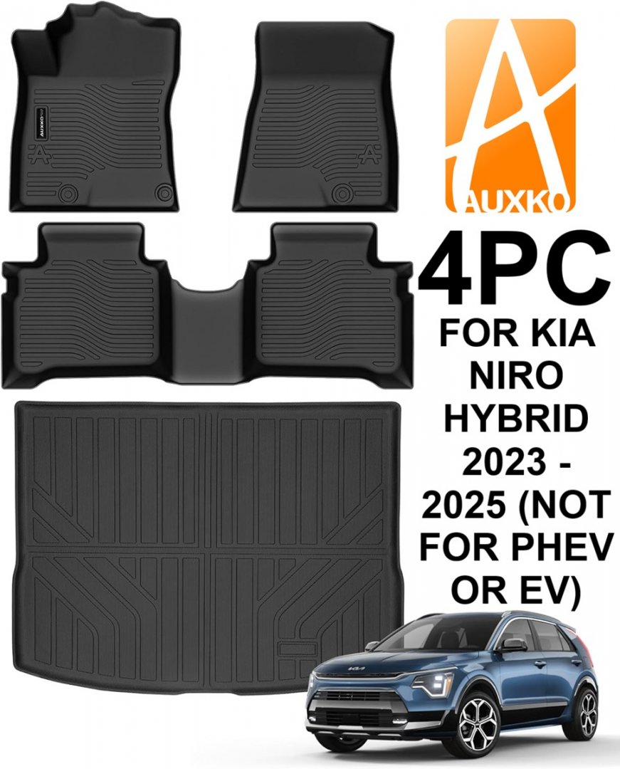 4PC Auxko All Weather Anti-slip TPE Floor Liner Cargo Mats for Kia NIRO Hybrid 2023 to 2025 (Not for PHEV or EV) - Black (Model: AFMA-242)