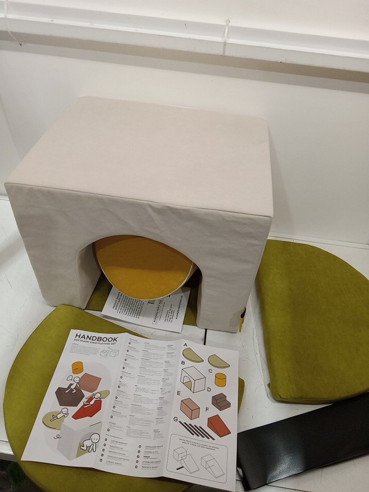4PC BanaSuper Kids Climbing Foam Block tunnel and chair - white/yellow/green