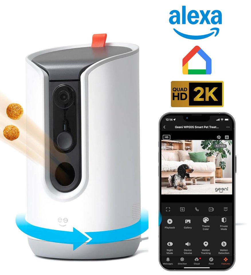 Geeni Pet Treat Dispenser with 2k HD Camera and Alexa and Google Compatible - White (Model: GN-WP005-199)