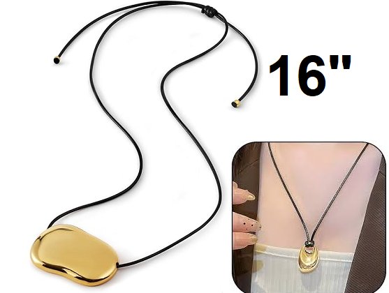 ADULT UNISEX Minimalist Wishbone Cord Necklace Cord Necklace With Sculptural Pendant - BLACK / 18K GOLD PLATED