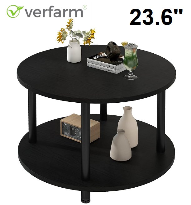 Round Coffee Table 2-Tier End Table - 23.6" - Black - (1020-BK-BK)