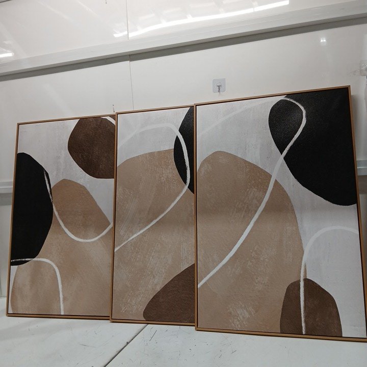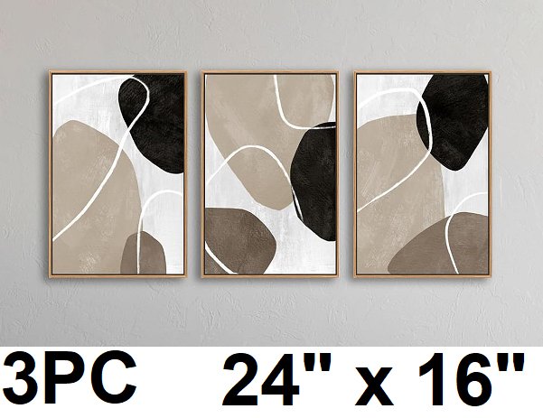 3pc Minimalist Abstract Boho Wall Art - 24" x 16" - brown/white