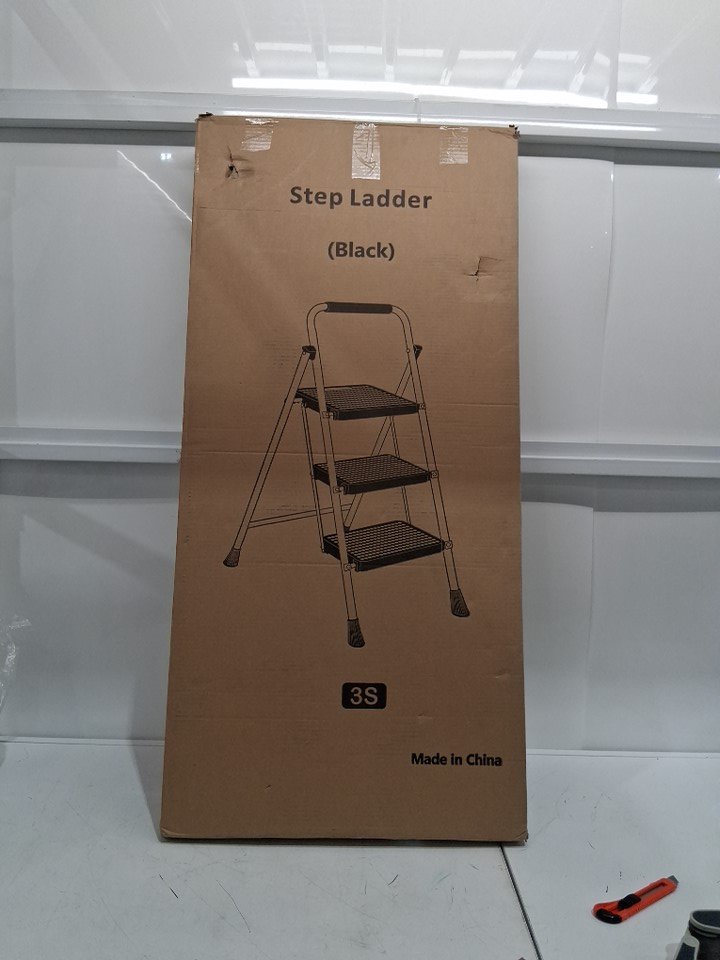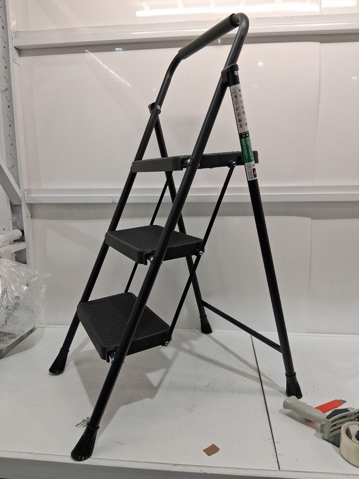 RIKADE 3-STEP FOLDING STEP LADDER WITH HANDLE - BLACK
