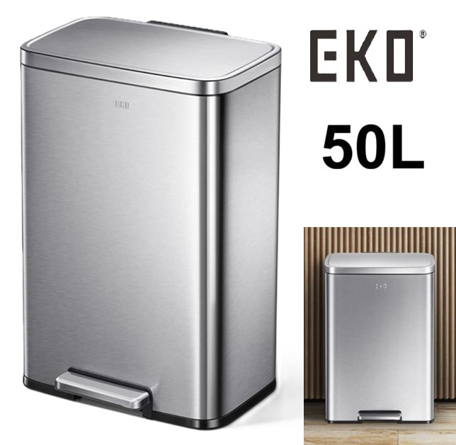 eko Madison series Step Trash Can with Inner Liner - 50l - brushed stainless steel (model:‎EK9361MT-50L)