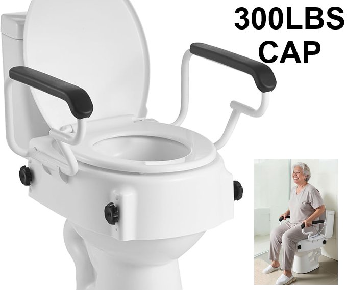 Raised Toilet Seat with Arms, 3-Level Adjustable Height, Widened Commode Elevated Toilet Seat Riser with Padded Handles for Seniors/Elderly/Handicap/Disabled Adults - 300lbs Cap (MODEL: SC7060H)