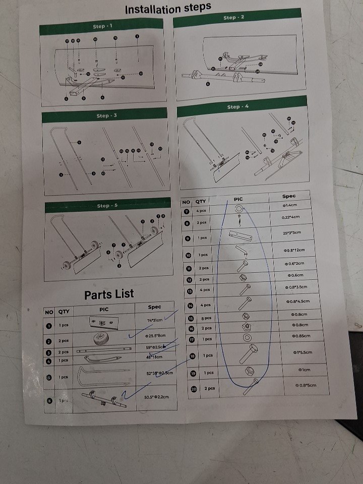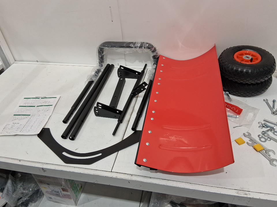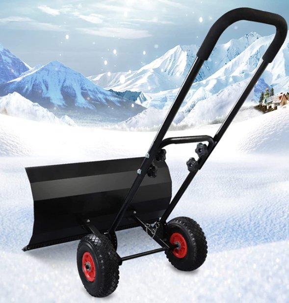 SNOW SHOVEL SCOOP PUSHER WITH WHEELS - LARGE ROAD CLEANING SHOVEL WITH 2 WHEELS - BLACK/RED