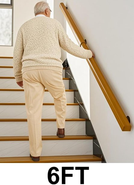 Wooden Non-Slip INDOOR Stair Railing - 6FT - BROWN (WOOD-6FT)