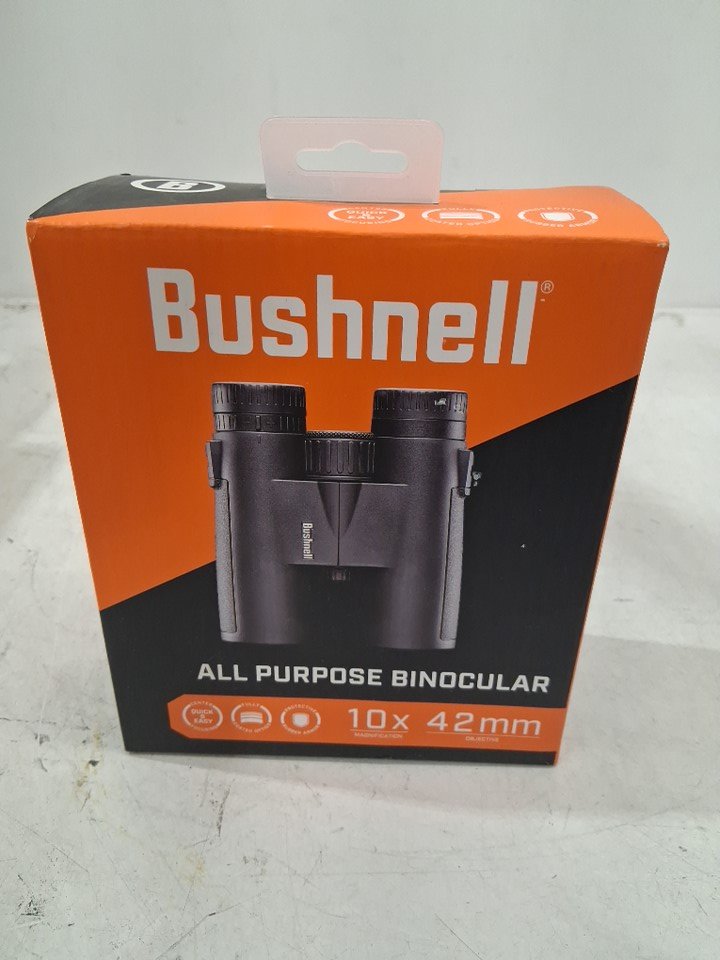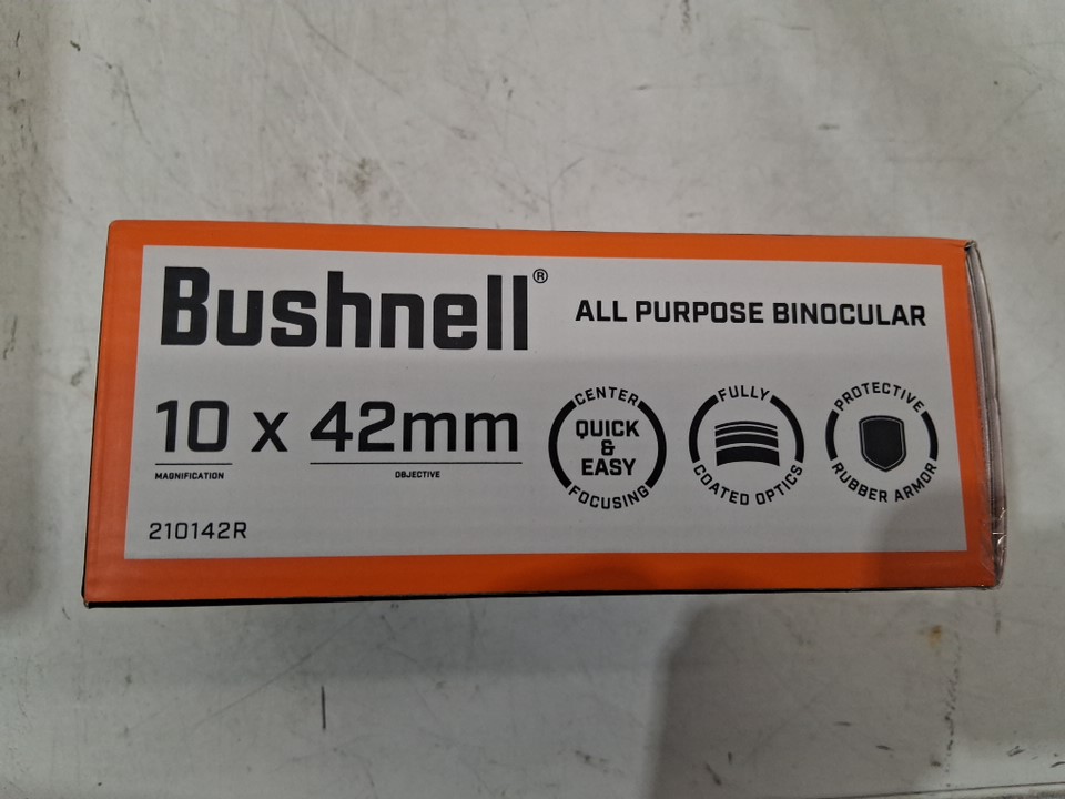 bushnell all purpose 10X42MM BINOCULARS WITH SPUDZ Cleaning Cloth AND CARRY CASE (model: 210142R)