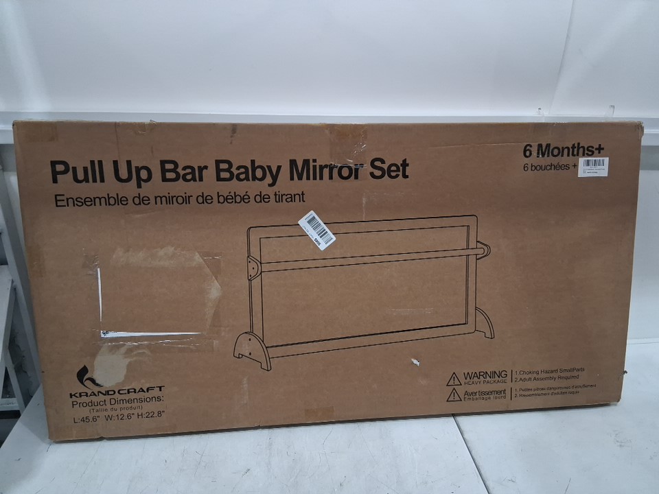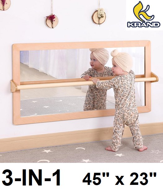 krand Montessori Shatterproof Safety Baby Mirror w/Pull Up Bar - 3-in-1 wall mounted or free standing - 45" x 23" - natural wood