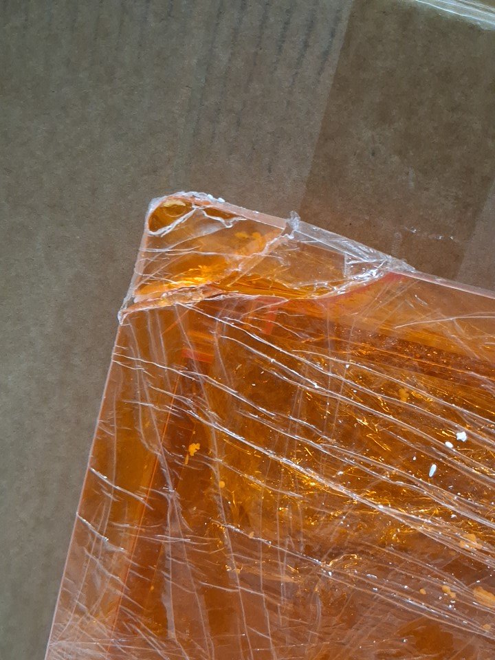The corner of the top shelf is cracked and the shelf has a crack though the center.