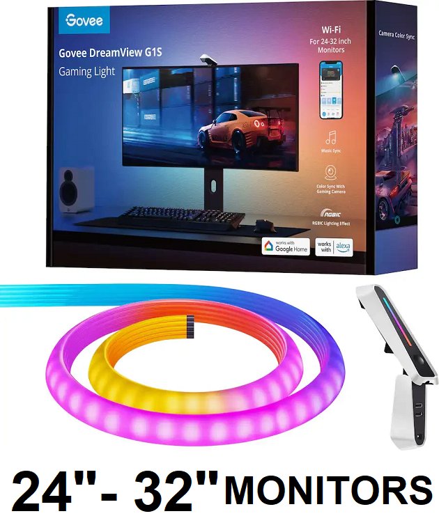 GOVEE G1S DREAMVIEW RGB GAMING LIGHT FOR 24" TO 32" MONITORS - WORKS WITH GOOGLE HOME AND ALEXA (MODEL: H604D)