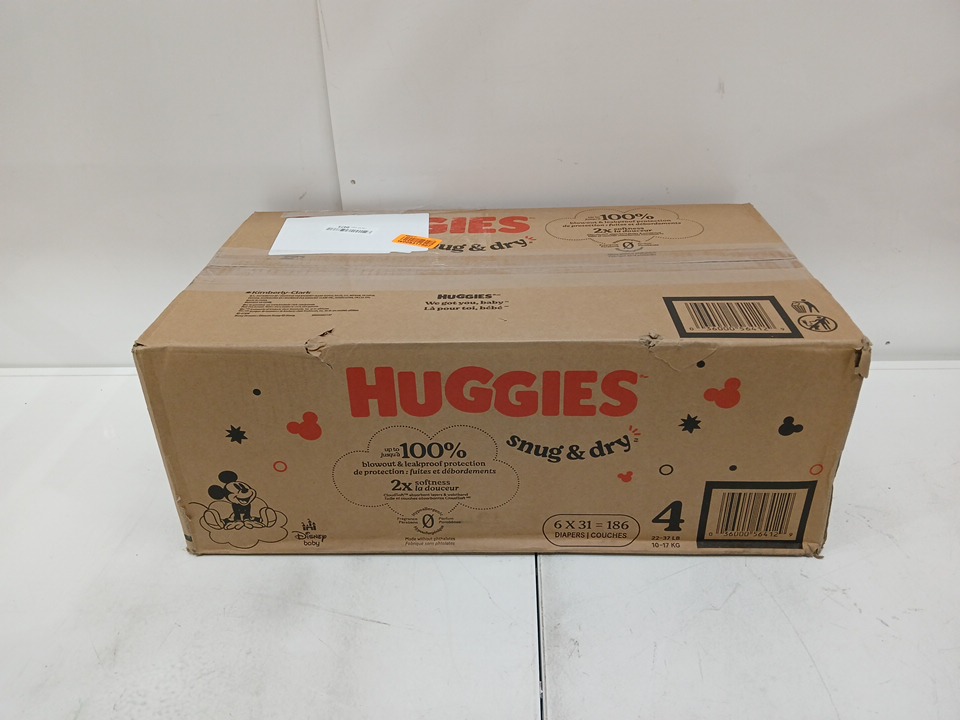 186pk huggies snug and dry diapers - size 4 - 22lb to 37lb - disney mickey mouse