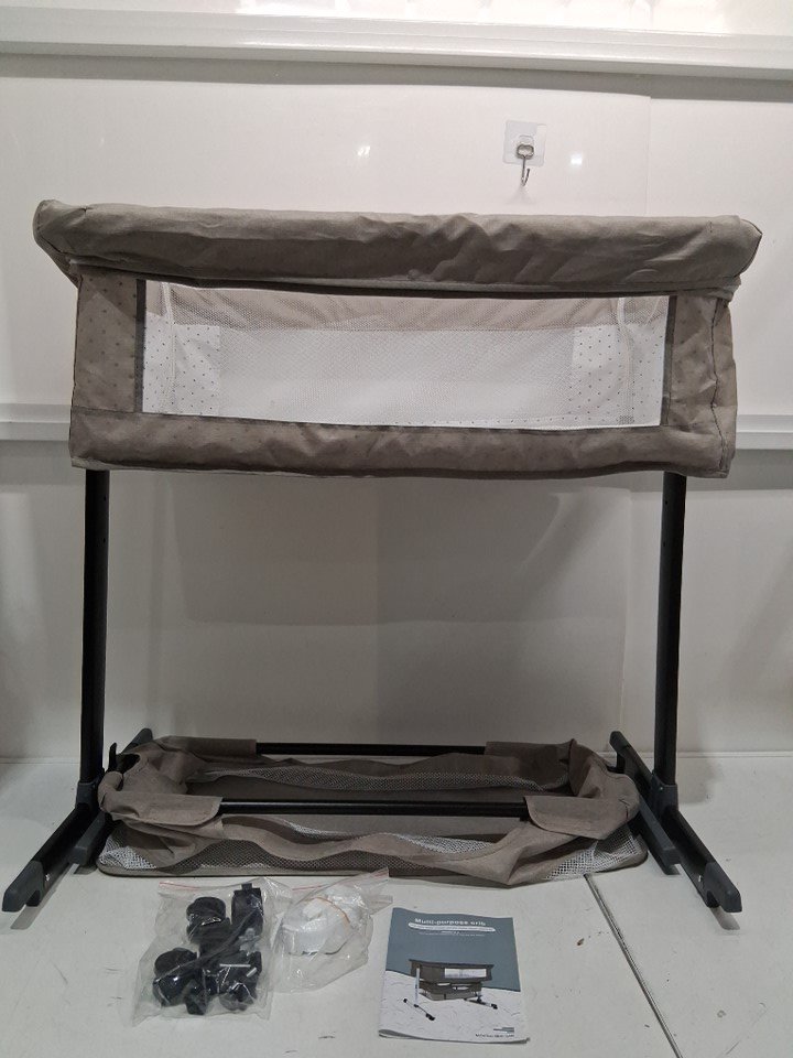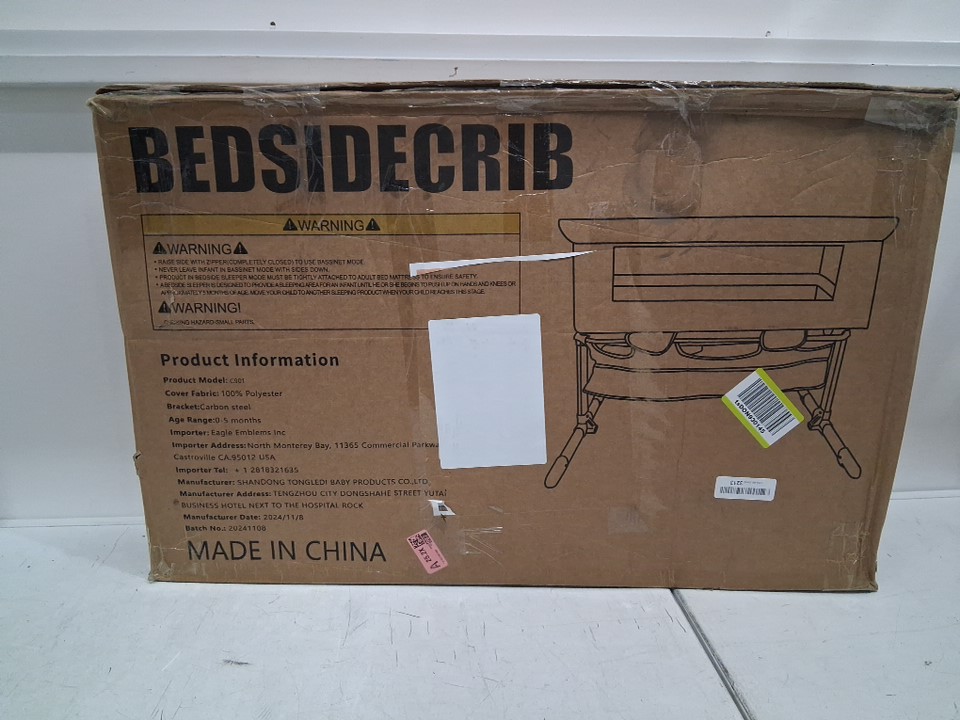 Bassinet Bedside Sleeper Breathable Full Mesh AND CARRYING BAG - BLACK/BEIGE