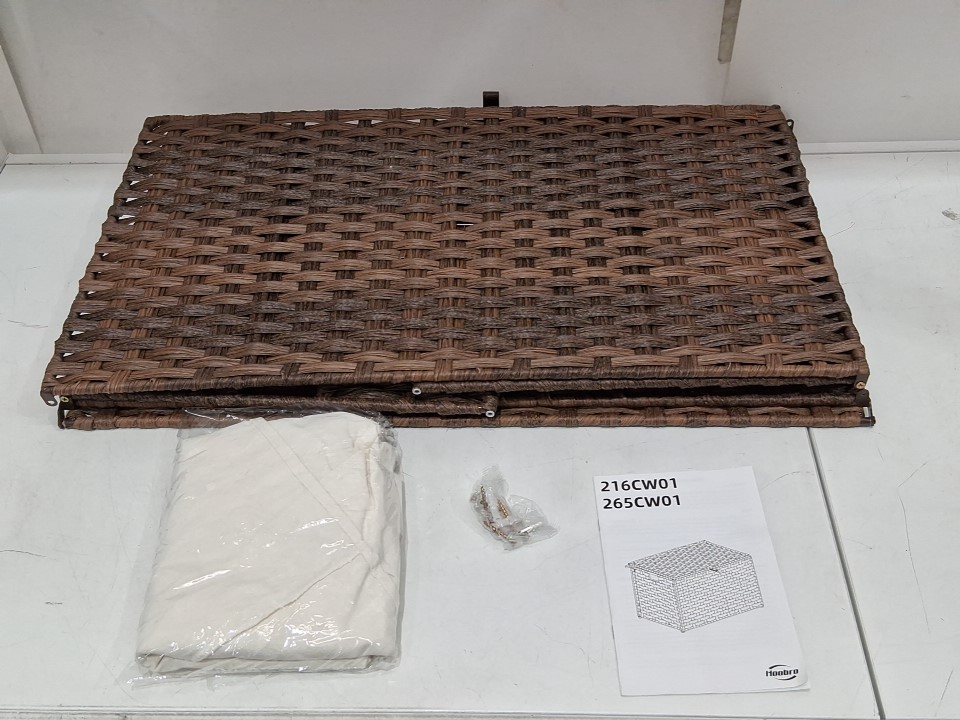 HOOBRO Storage Basket with Lid and Handles - 160L Wicker Basket, Handwoven, Metal Frame and Soft Lining, Foldable - Brown (model: BR216CW01)