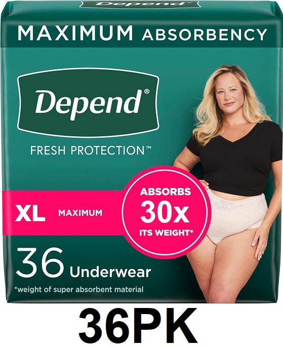 36pk women's depend fresh protection adult disposable underwear - xl - pink