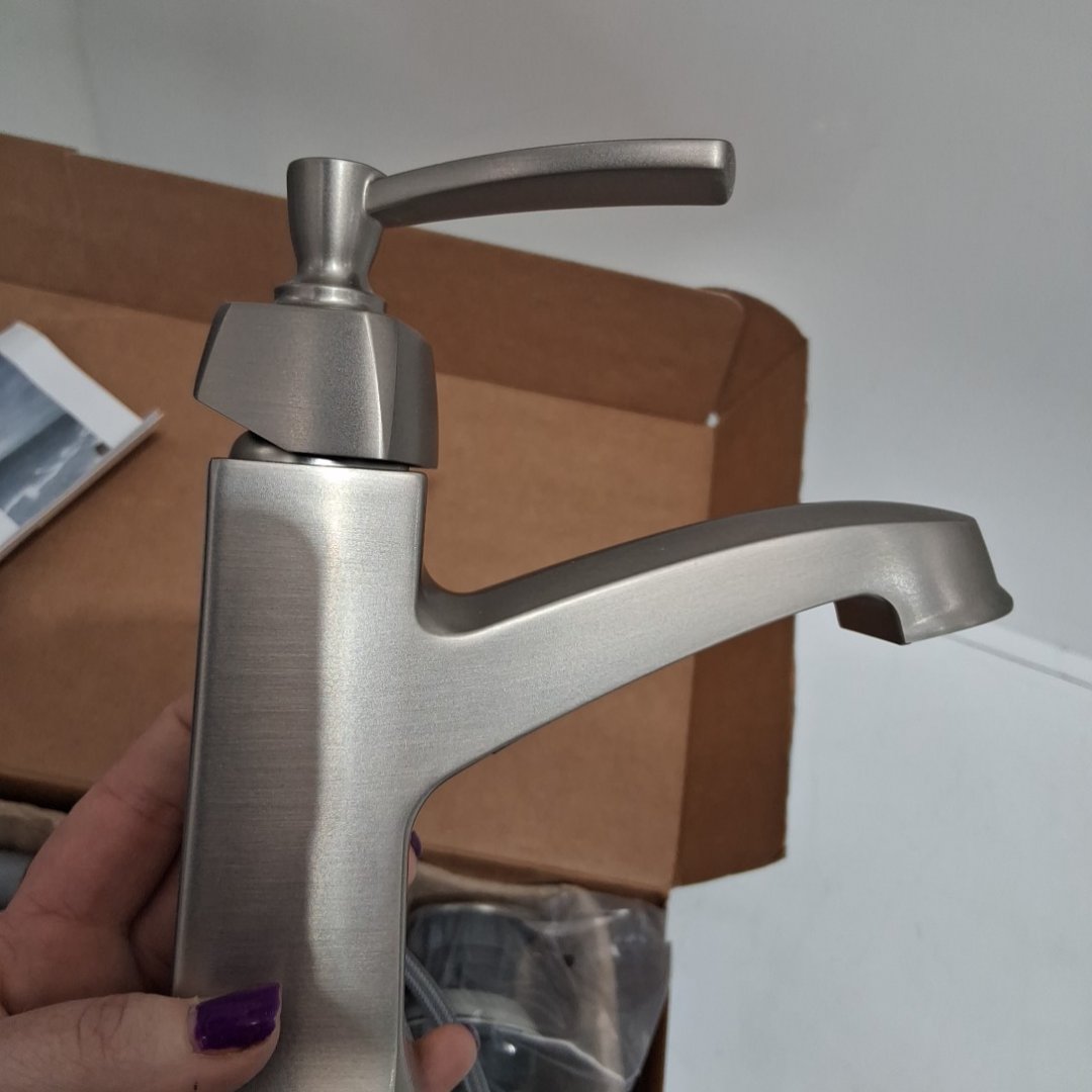 moen One-Handle High Arc Bathroom Faucet with pop up drain - spot resist brushed nickel (model: WS84923SRN)