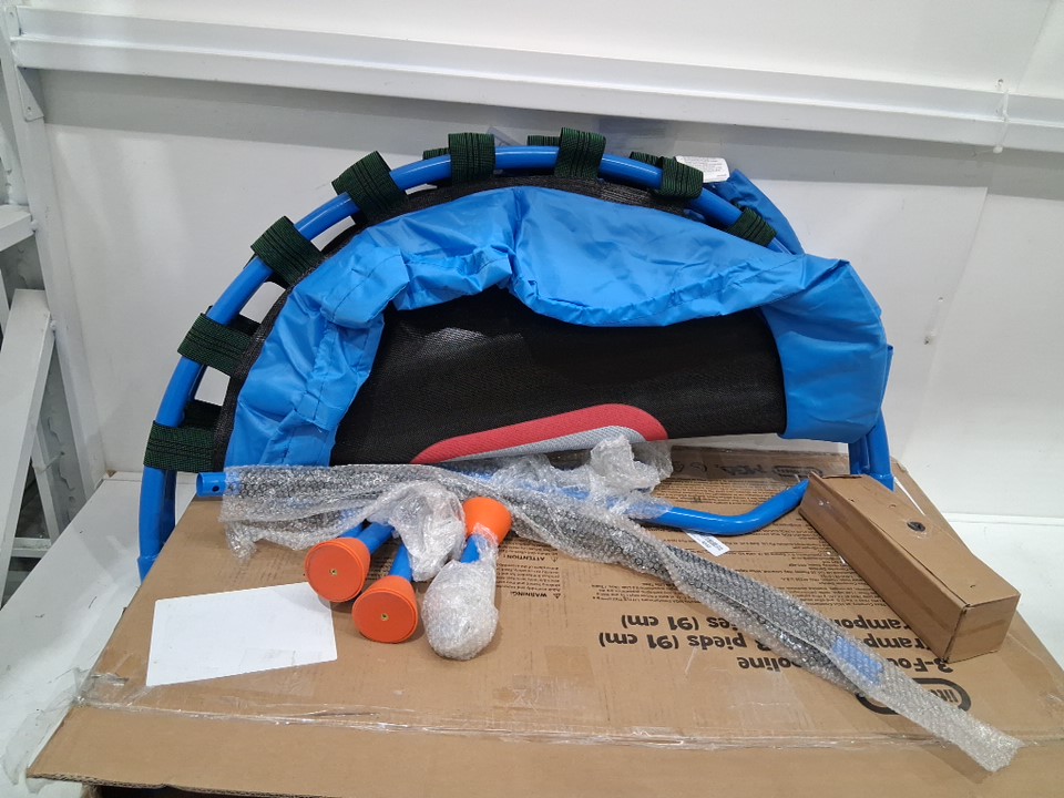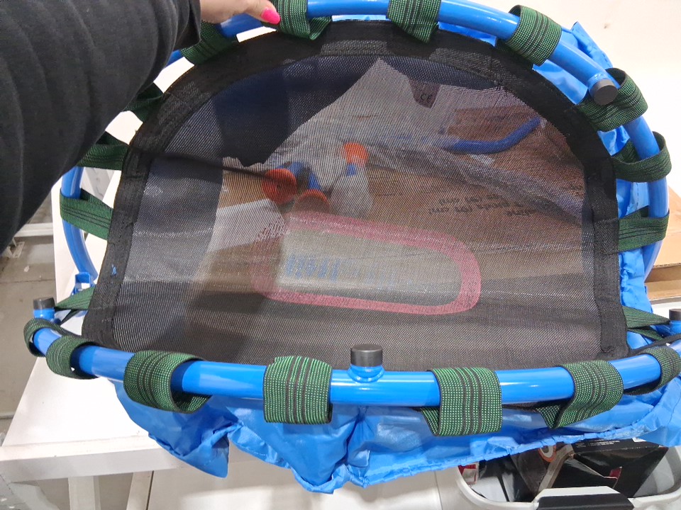there is some color fading on the trampoline as well as the little tikes logo on the mesh portion is faded. light dirt on the legs.