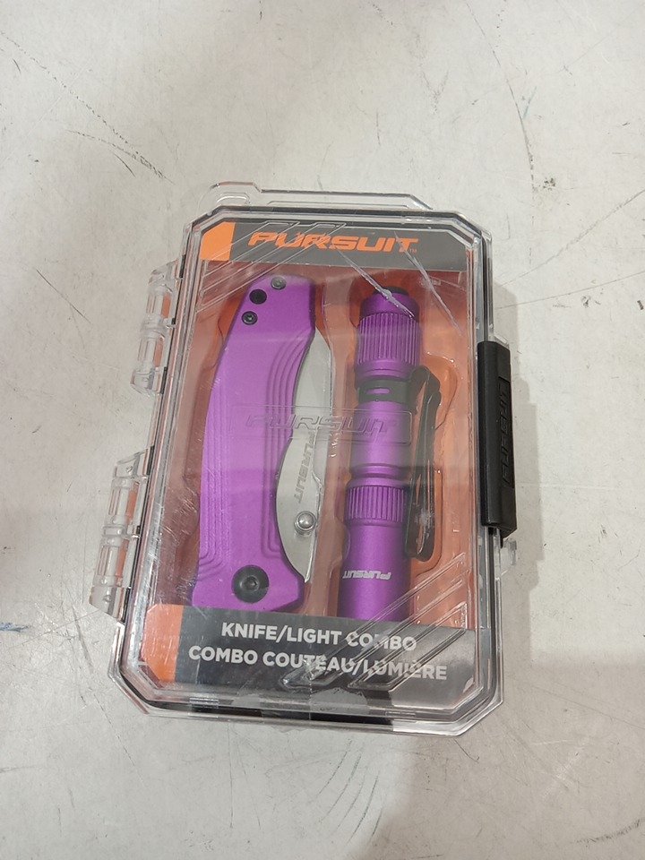 2PC BPS Pursuit Knife and Light Combo with Case - Titanium/Lilac (Model: purknflthcs/101676999)