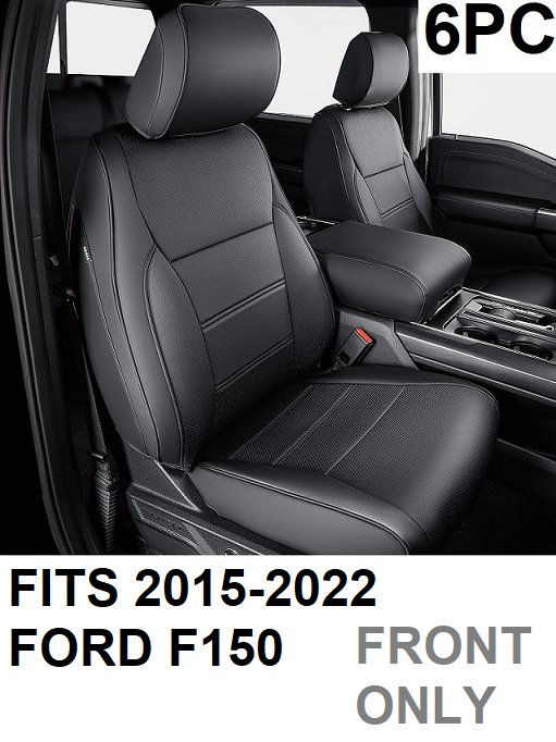 6PC DrCarNow Front Leather Seat Cover - FITS Ford F150 2015-2025 - BLACK