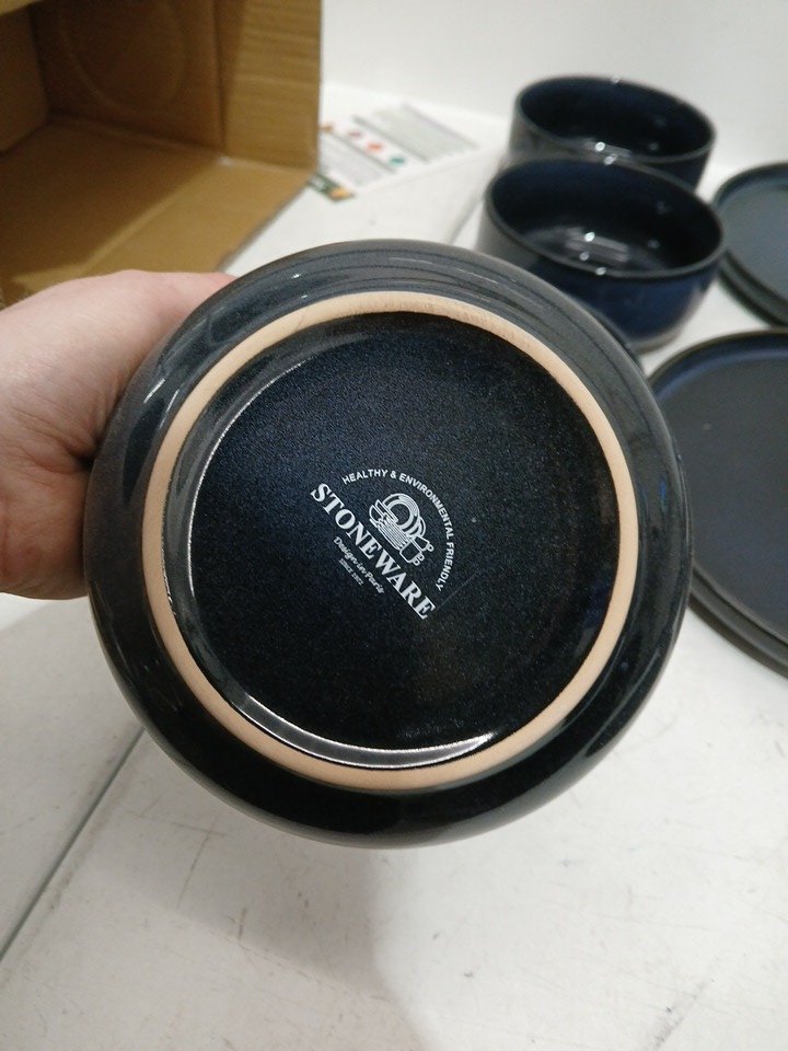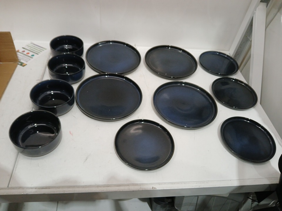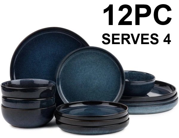 12pc stoneware dinnerware set - dinner plates, desSert plates, and bowls - serves 4 - blue